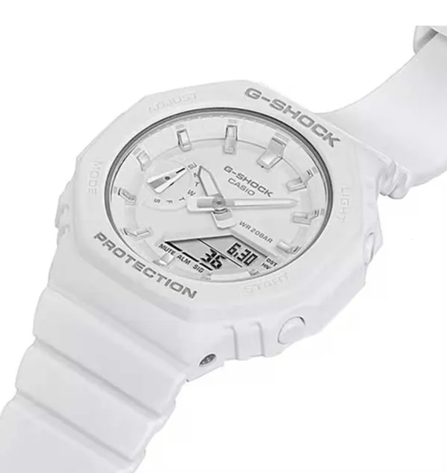 ۱. تفاوت مدل GMA-S2100 با مدل GA-2100 در چیست؟ مدل GMA-S2100 نسخه کوچکتر (S مخفف Series-S یا Small) است. از نظر قابلیت فنی کاملاً مشابه هستند، اما ابعاد قاب و طول بند در سری GMA کاهش یافته تا برای خانمها و افرادی که مچ دست لاغری دارند، تناسب بهتری داشته باشد.